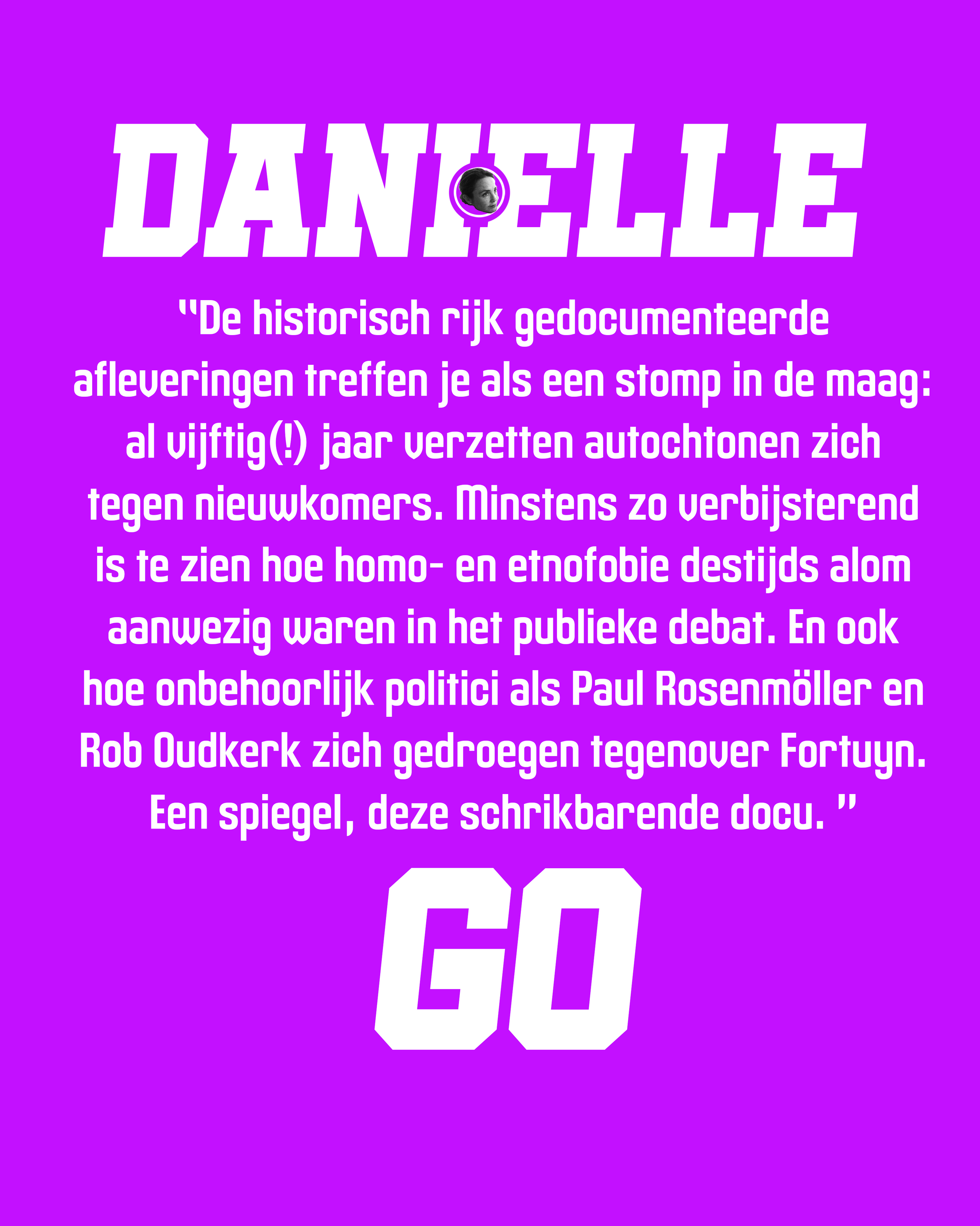 Fortuyn is een achtdelige NPO/KRO-NCRV-docuserie over de snelle opkomst en de moord op Pim Fortuyn, en wat zijn ideeën over migratie en islam hebben losgemaakt. Met veel archief en nieuwe gesprekken, vooral in en vanuit Rotterdam, laten voor- en tegenstanders én Nederlanders met een migratieachtergrond zien hoe zijn retoriek toen doorwerkte en waarom zijn invloed nog steeds voelbaar is.