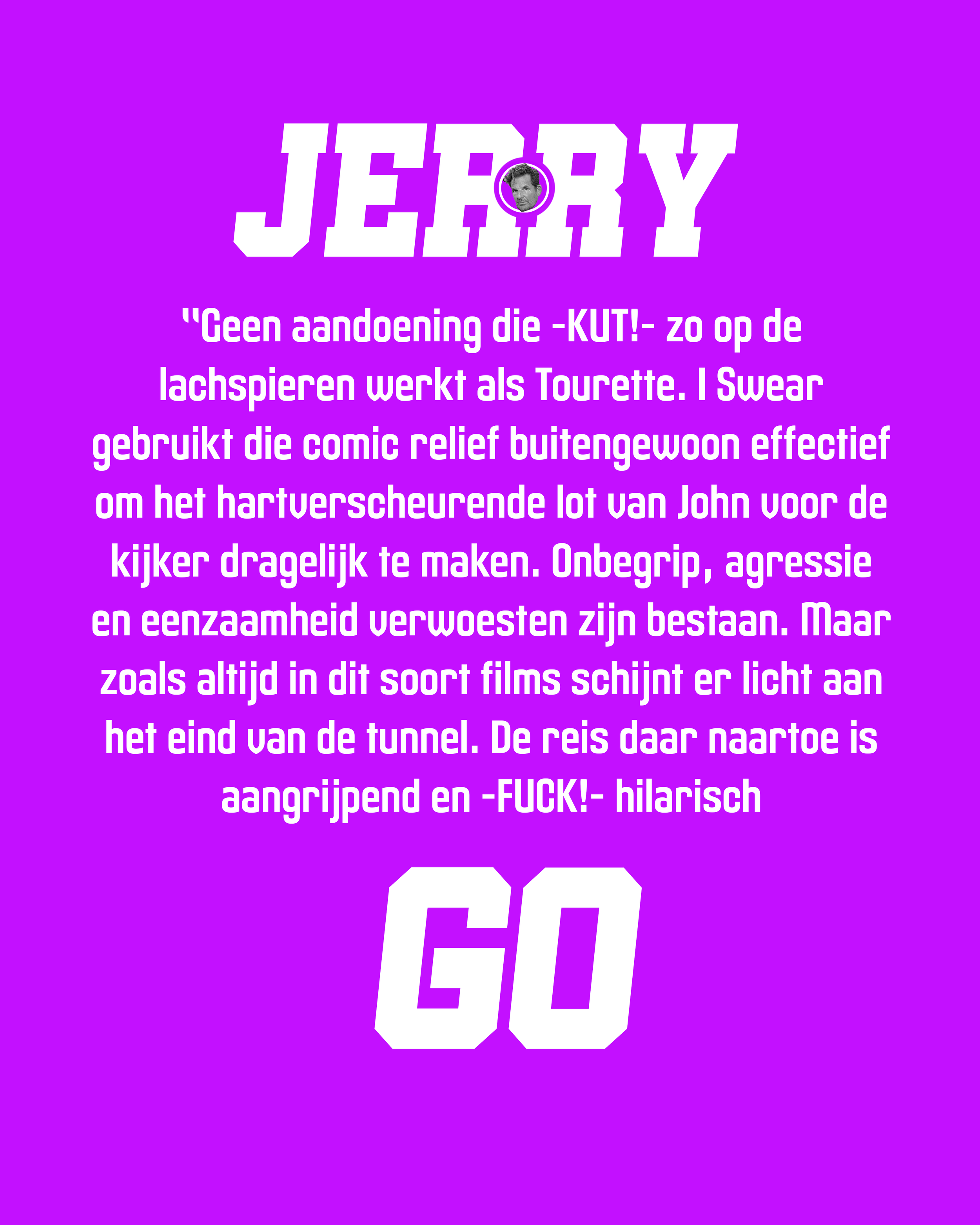 I Swear is een Britse biografische dramafilm van regisseur Kirk Jones, gebaseerd op het waargebeurde verhaal van John Davidson - een Schot met ernstig Tourette-syndroom.