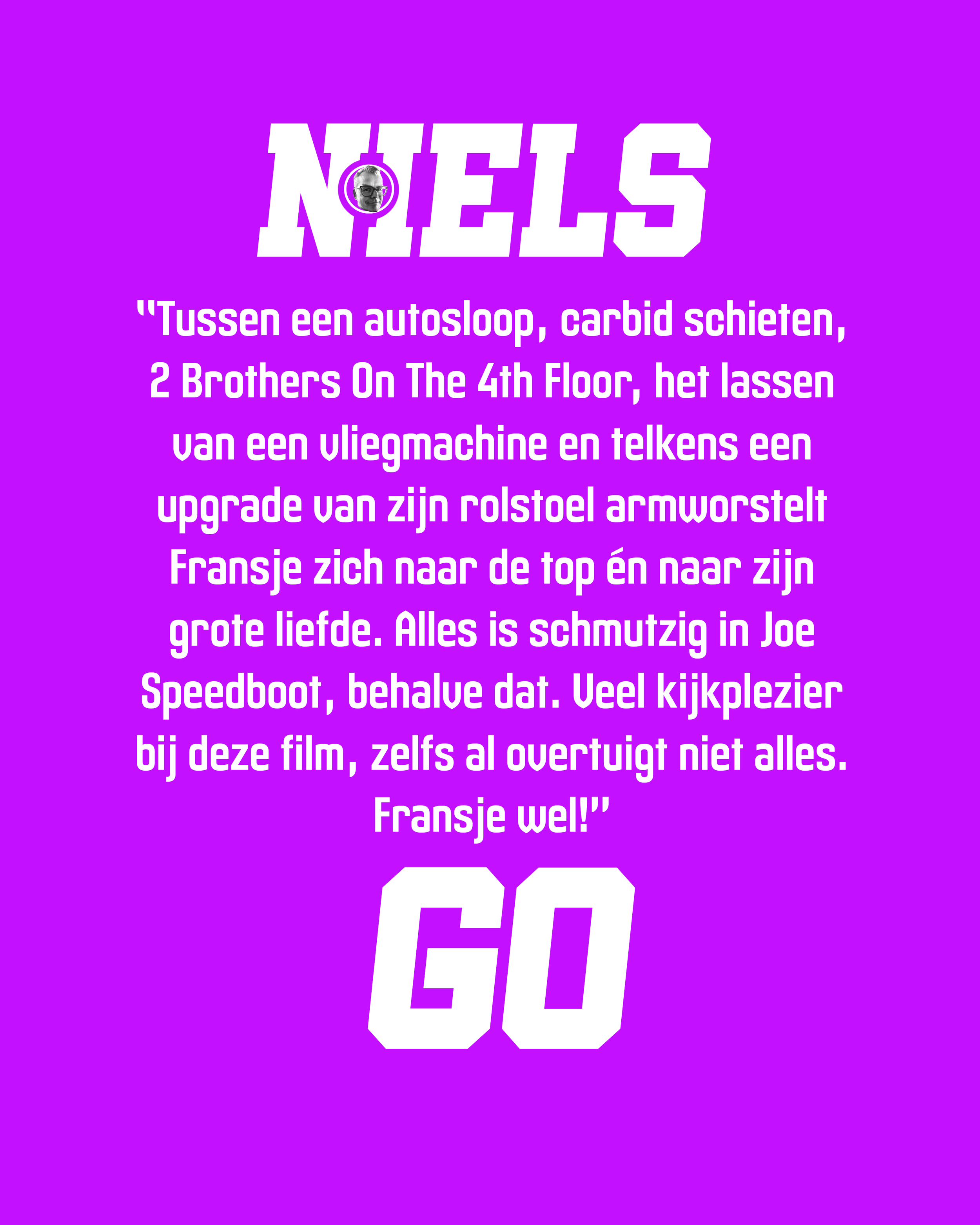 Na een bizar ongeluk kan de tiener Fransje Hermans niet meer lopen of verstaanbaar praten, en heeft hij nog maar gebruik van één arm. Hij lijkt gedoemd zijn dagen te slijten in het slome dorp Lomark. Dat verandert wanneer de charismatische nieuwkomer Joe Speedboot opduikt en hem onverwachte horizonten biedt. De vriendschap tussen de twee is hecht, en Joe geeft Fransje het gevoel dat hij weer bij de maatschappij hoort.