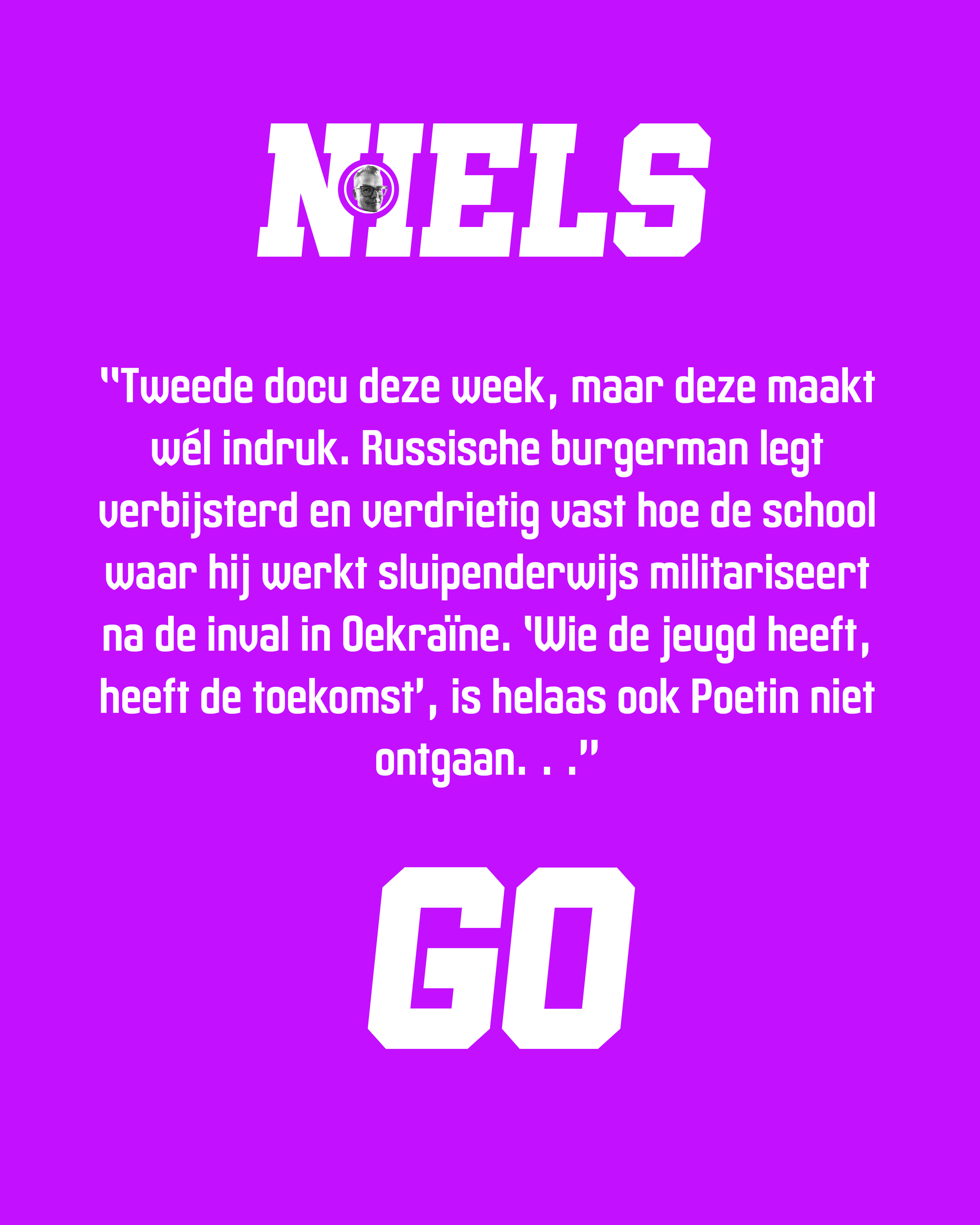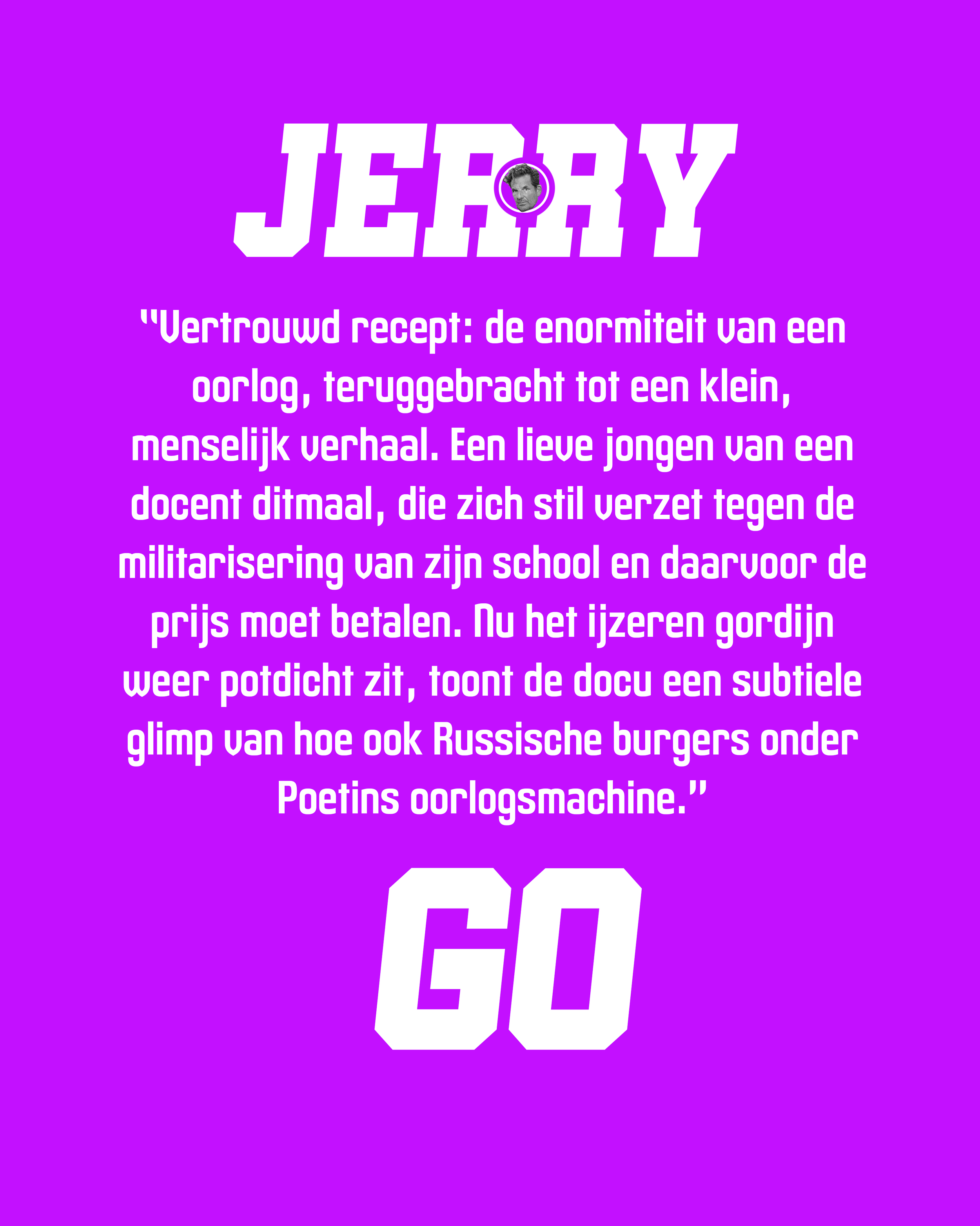 Mr. Nobody Against Putin is een documentaire over een Russische schooldirecteur die aanvankelijk meebuigt met de staatspropaganda, maar steeds meer innerlijk verzet voelt tegen het regime van Vladimir Poetin. Terwijl de oorlog in Oekraïne escaleert, wordt hij gedwongen te kiezen tussen gehoorzaamheid, persoonlijke moraal en de veiligheid van zijn gezin. De film biedt een indringend en menselijk portret van stil verzet binnen een autoritair systeem.